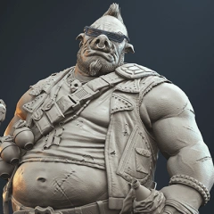 A muscular humanoid figure with boar-like features, wearing a vest and sunglasses, ready for 3D printing.