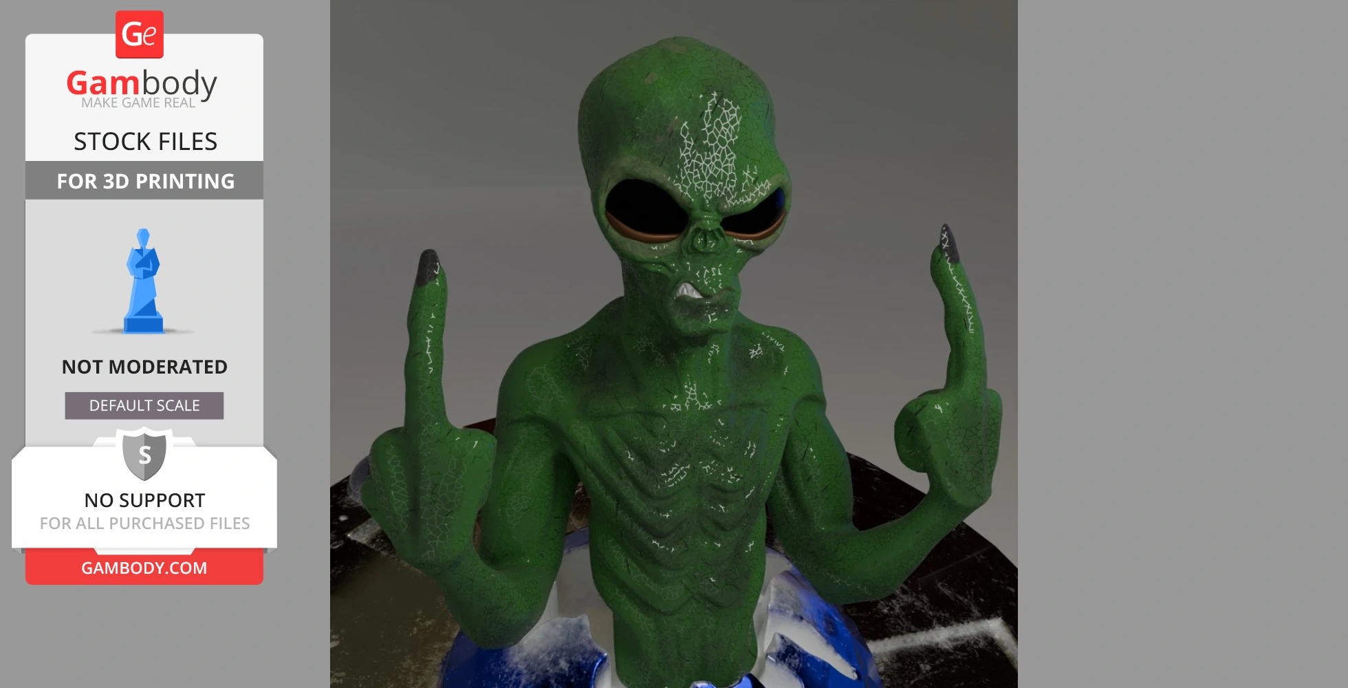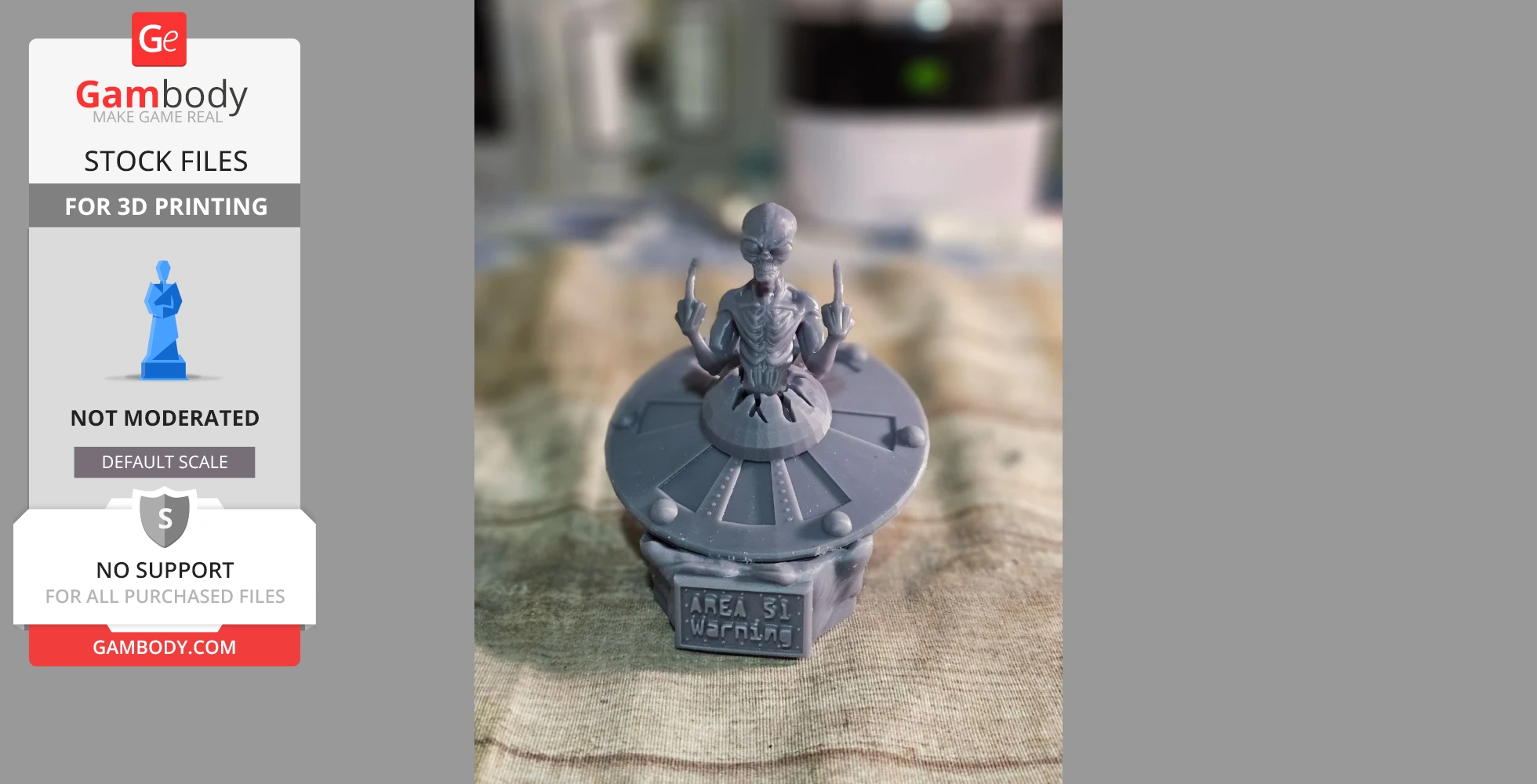 STL files and the cutting of this model are preserved as created by the Author. This model was not moderated by Gambody, it is not subject to technical support by Gambody, and we do not offer any guarantees on the 3D printing results.