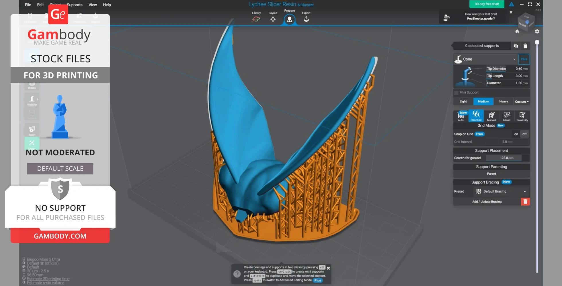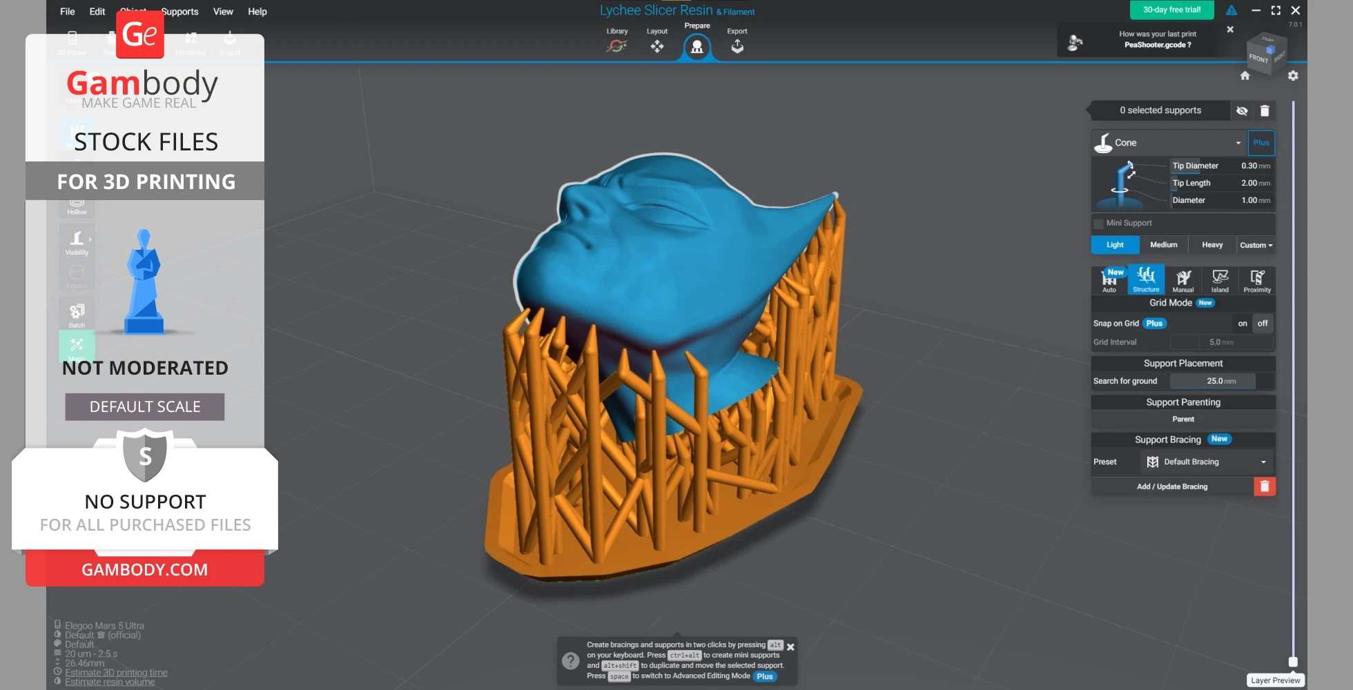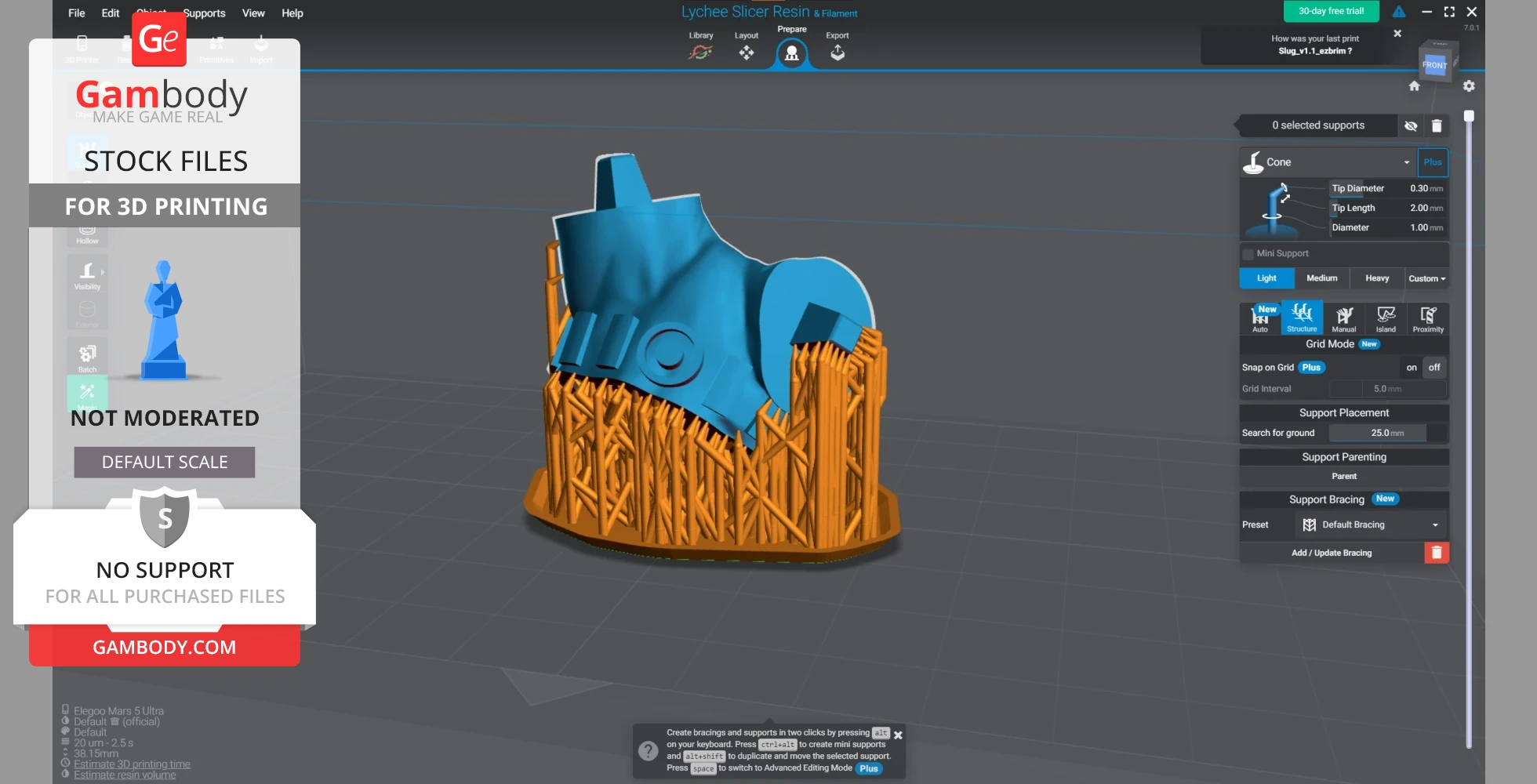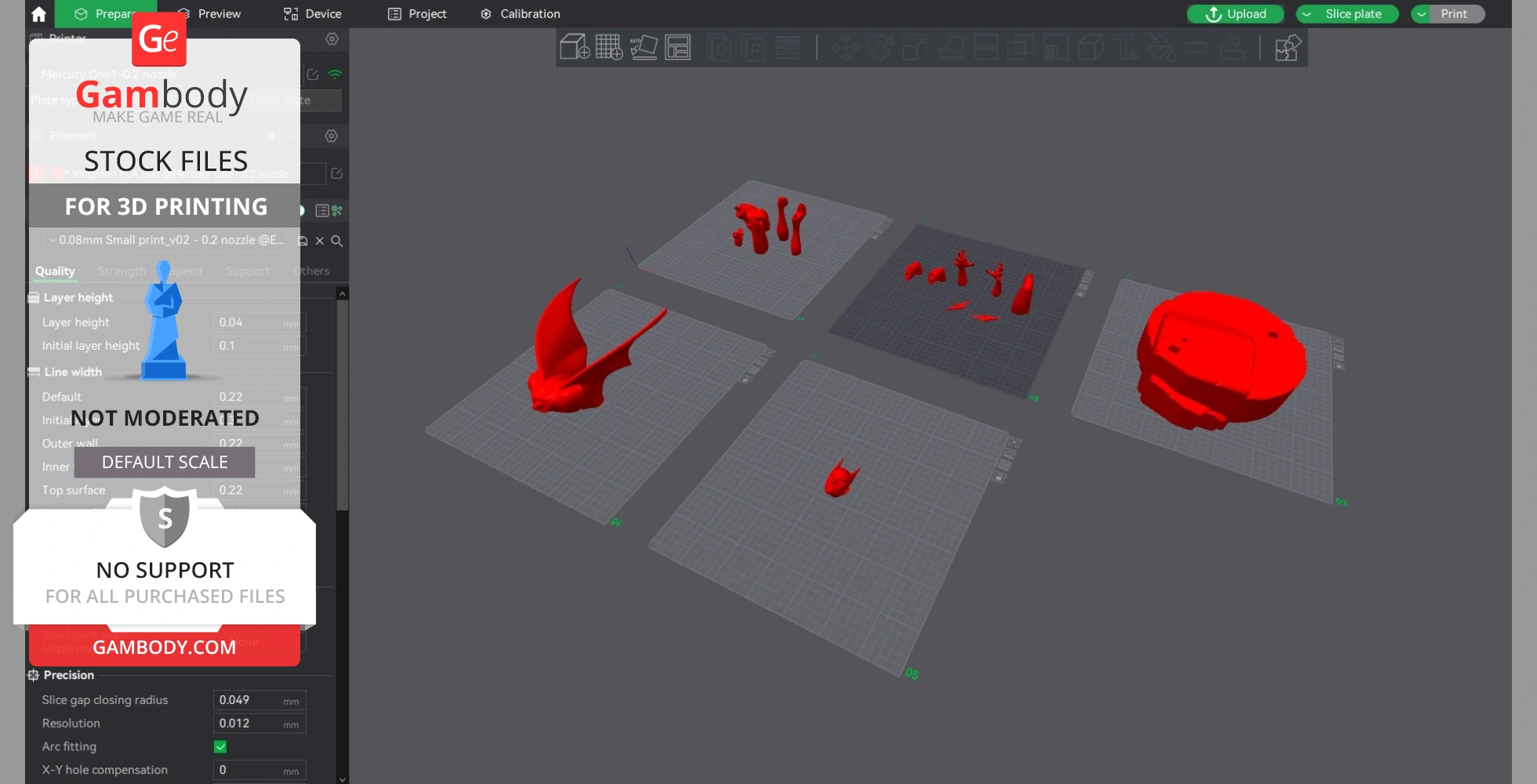 STL files and the cutting of this model are preserved as created by the Author. This model was not moderated by Gambody, it is not subject to technical support by Gambody, and we do not offer any guarantees on the 3D printing results.
