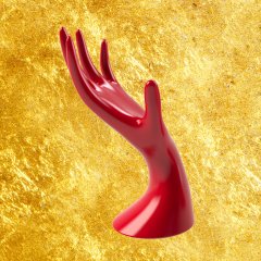 Intricately designed red dagger with organic, jagged edges and a twisted hilt.