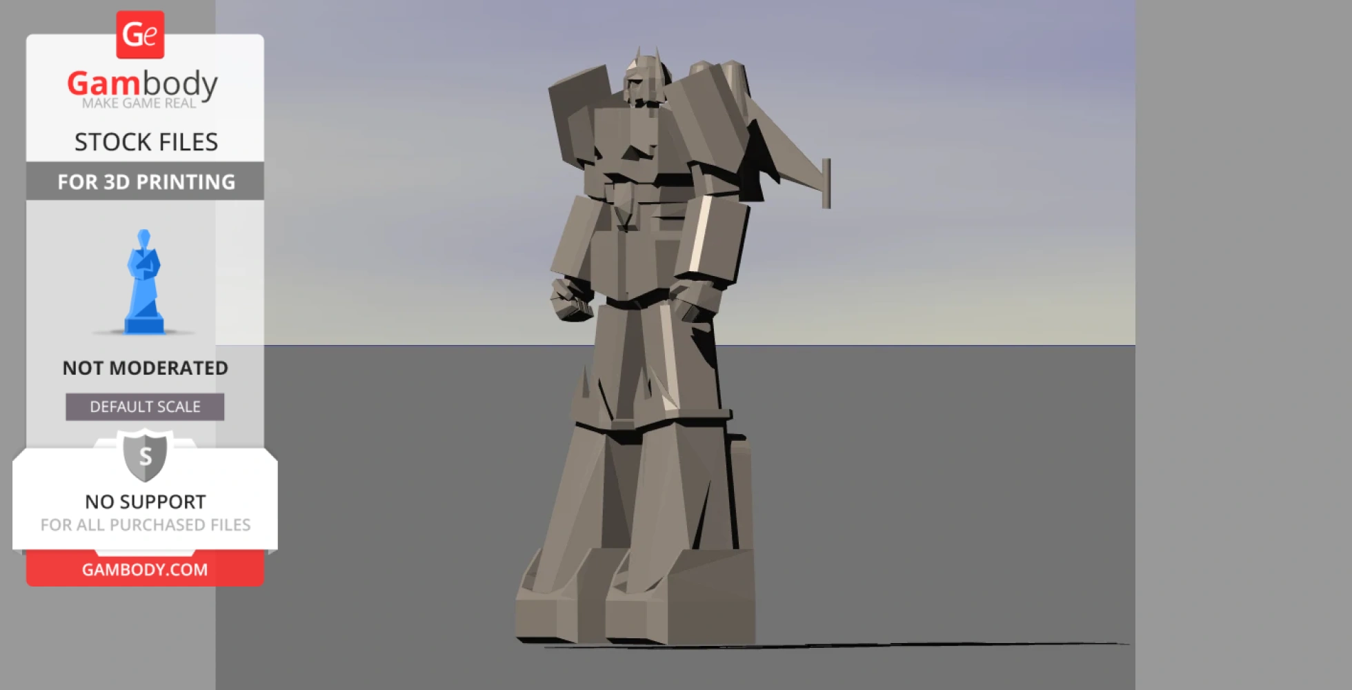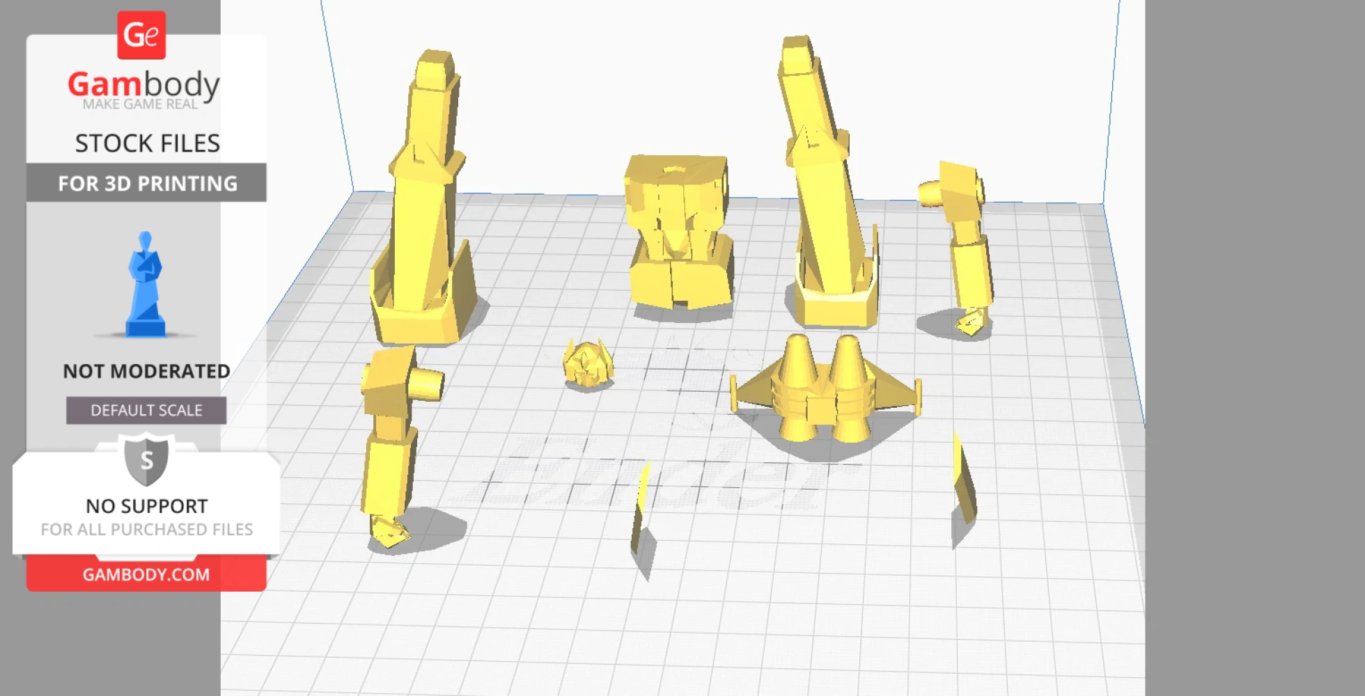 STL files and the cutting of this model are preserved as created by the Author. This model was not moderated by Gambody, it is not subject to technical support by Gambody, and we do not offer any guarantees on the 3D printing results.