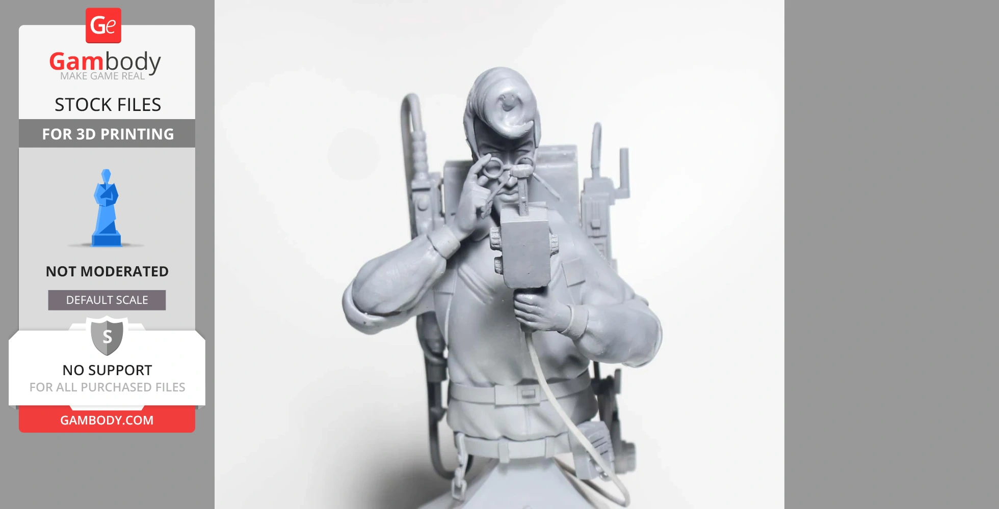 STL files and the cutting of this model are preserved as created by the Author. This model was not moderated by Gambody, it is not subject to technical support by Gambody, and we do not offer any guarantees on the 3D printing results.