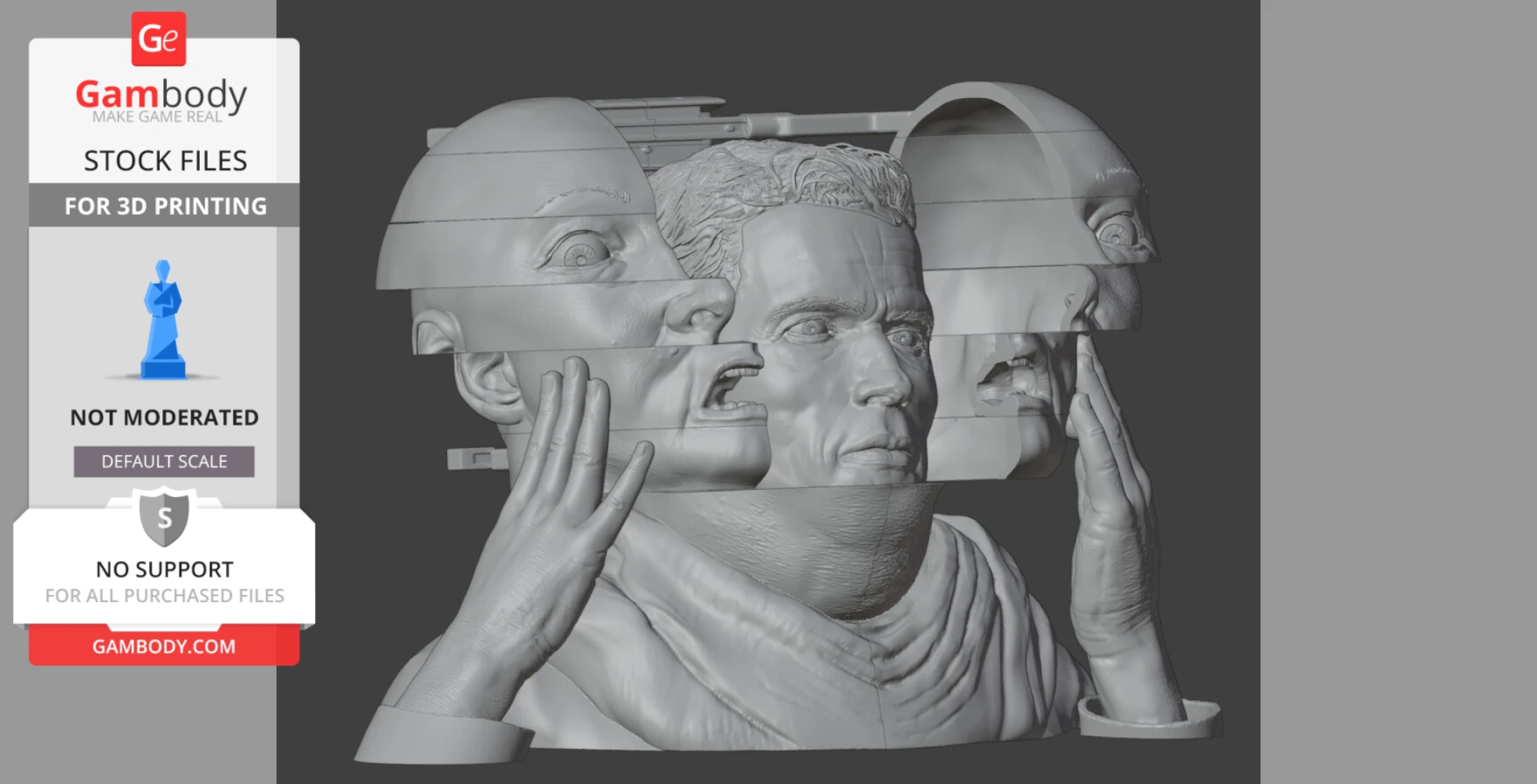 STL files and the cutting of this model are preserved as created by the Author. This model was not moderated by Gambody, it is not subject to technical support by Gambody, and we do not offer any guarantees on the 3D printing results.