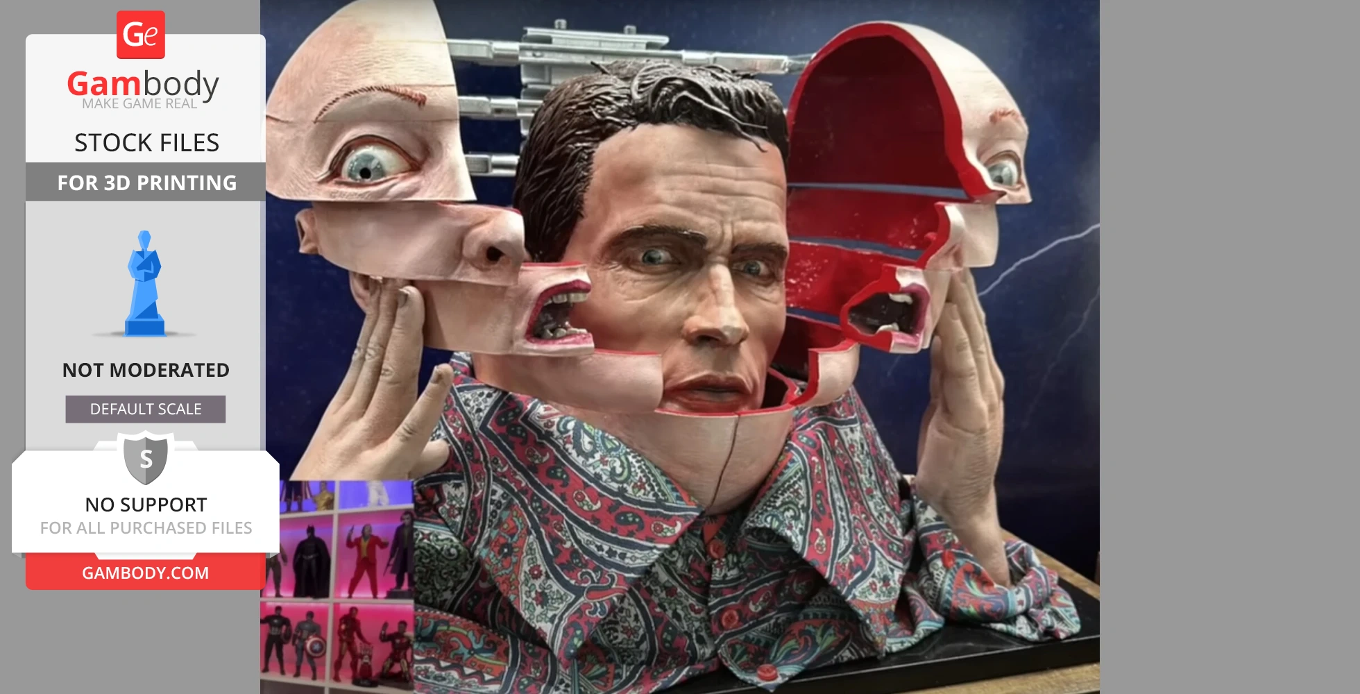 Watch the assembly video for High Detail Real Size Arnold Schwarzenegger from Total Recall, and explore more tutorials, behind-the-scenes content, 3D printing timelapses, and painting guides on the official Gambody YouTube channel.