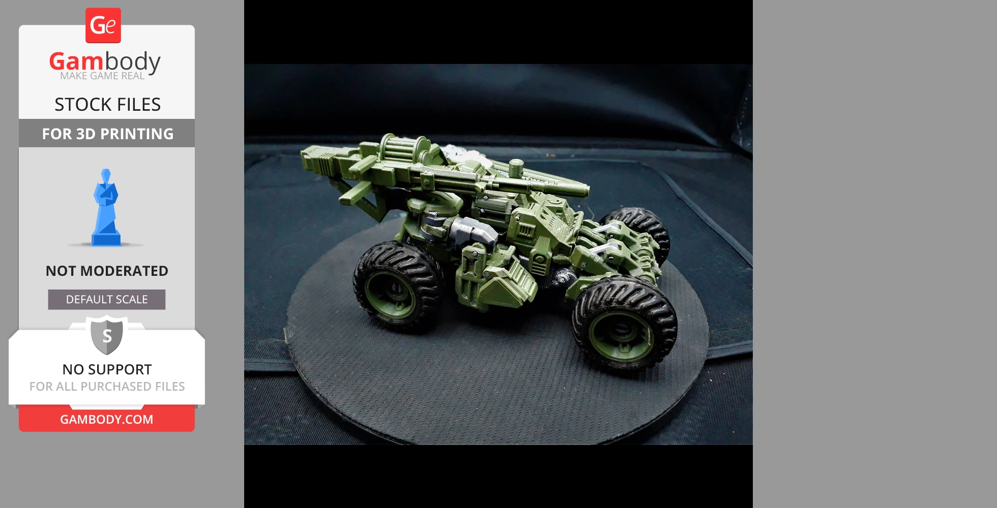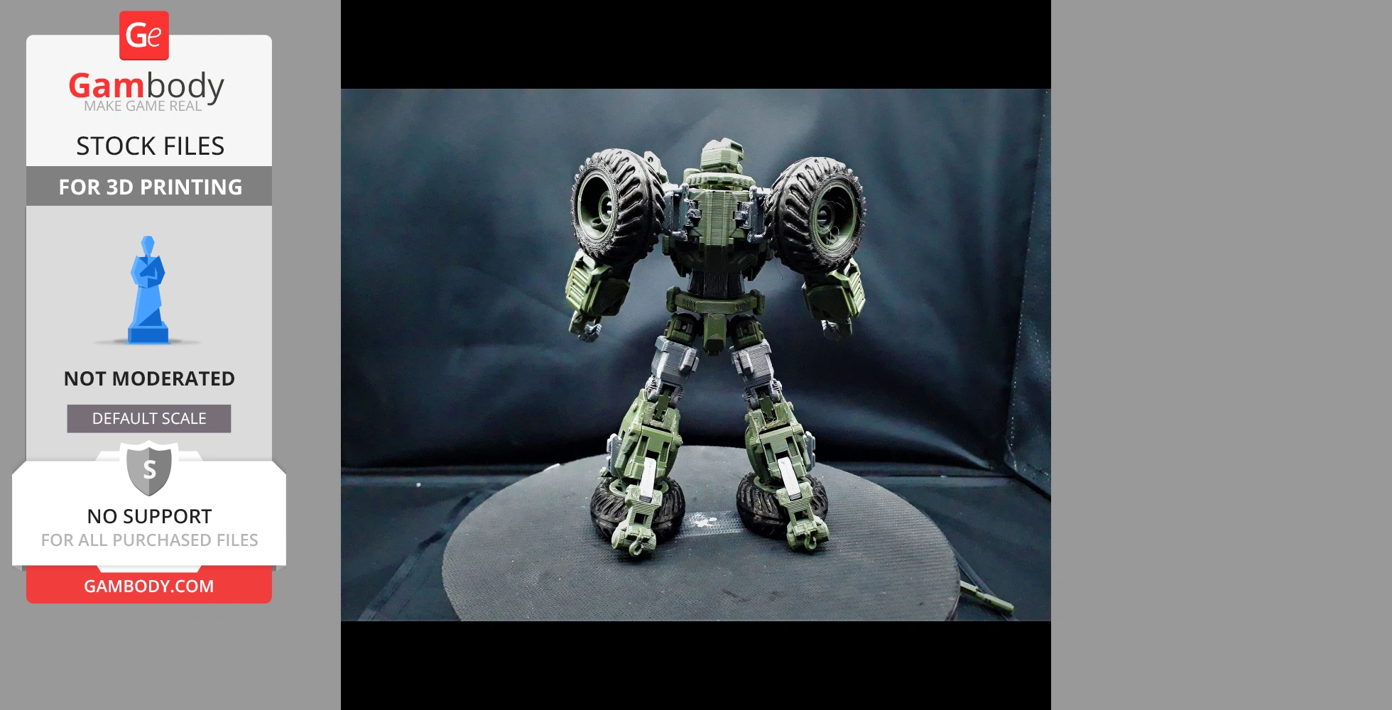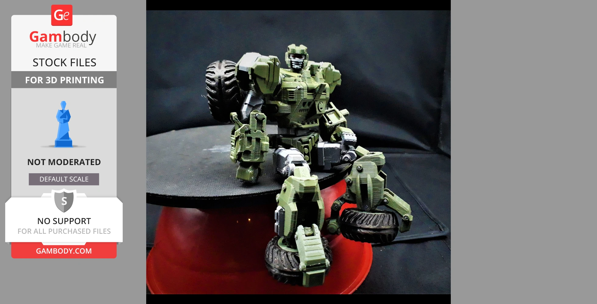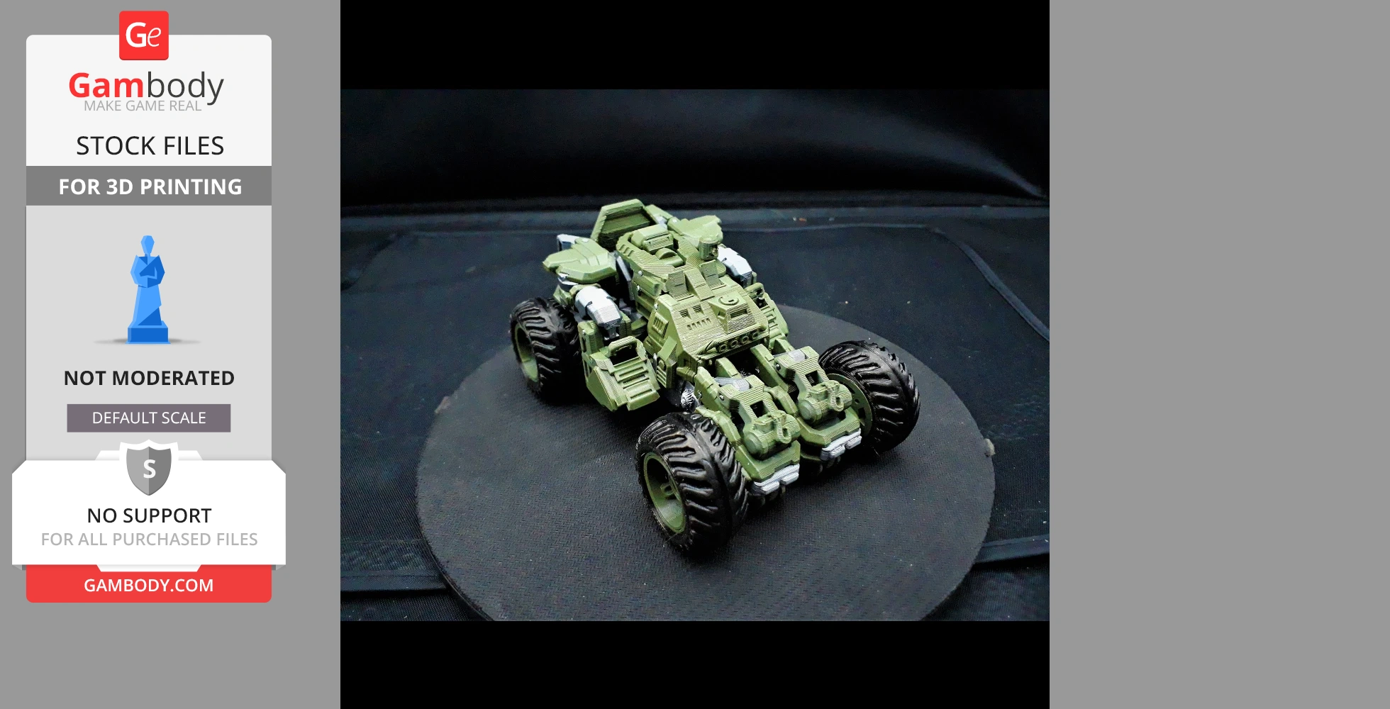 STL files and the cutting of this model are preserved as created by the Author. This model was not moderated by Gambody, it is not subject to technical support by Gambody, and we do not offer any guarantees on the 3D printing results.