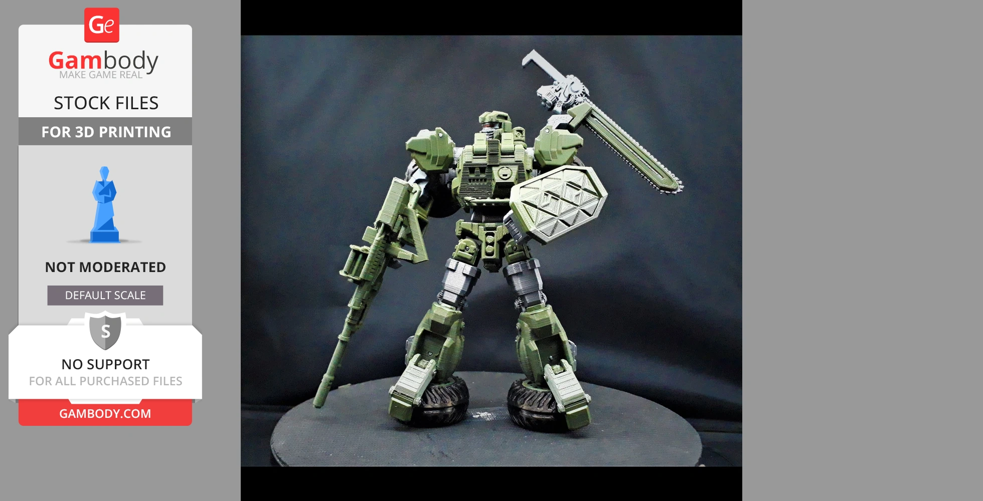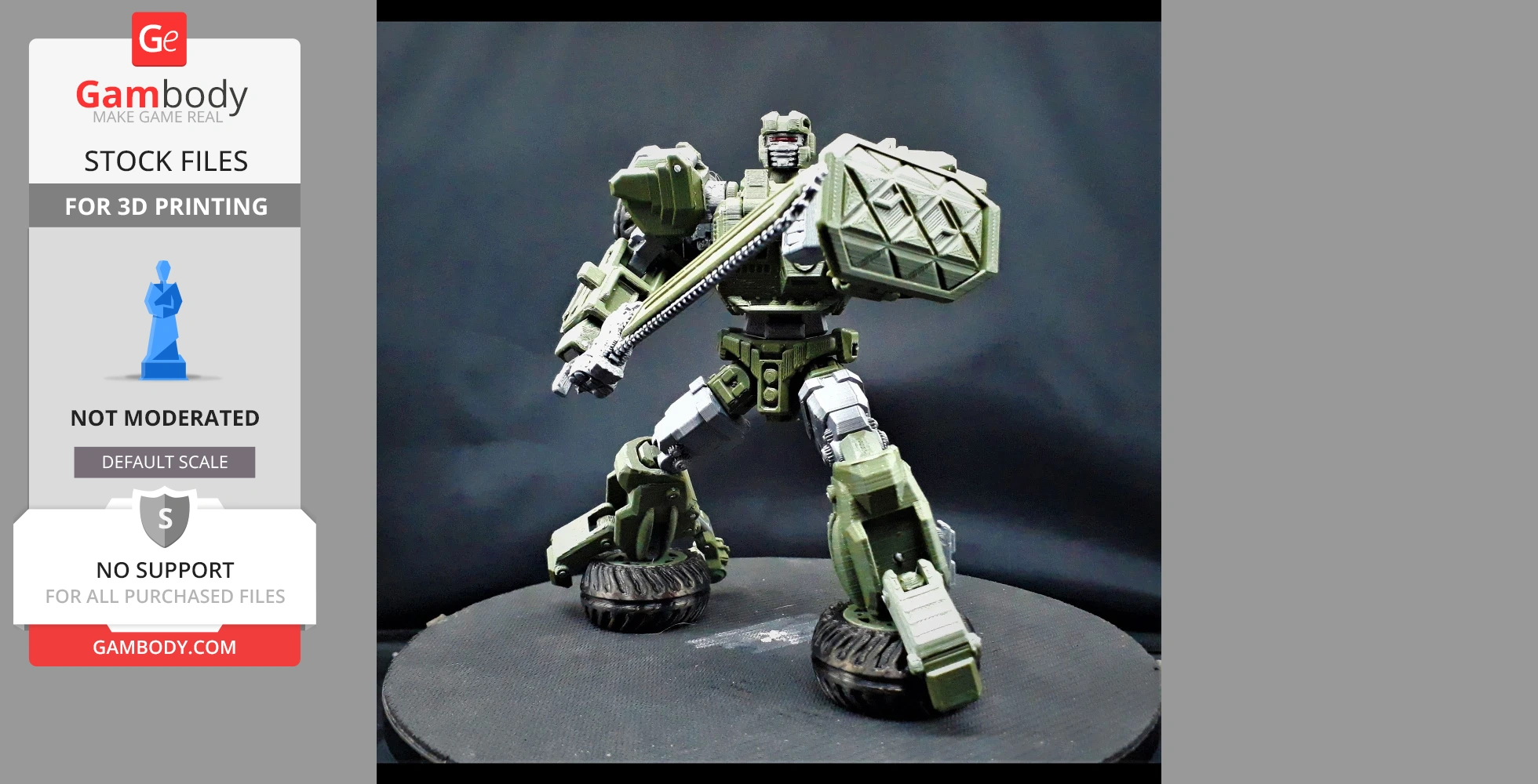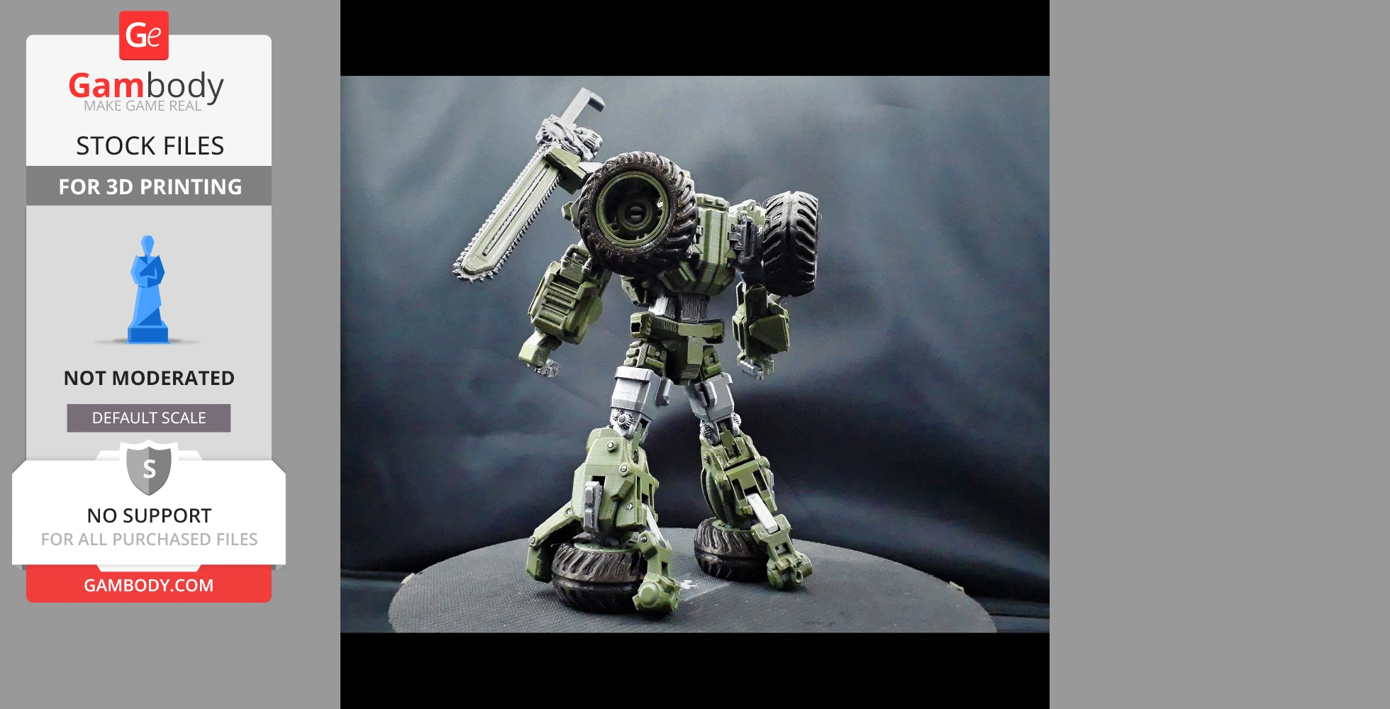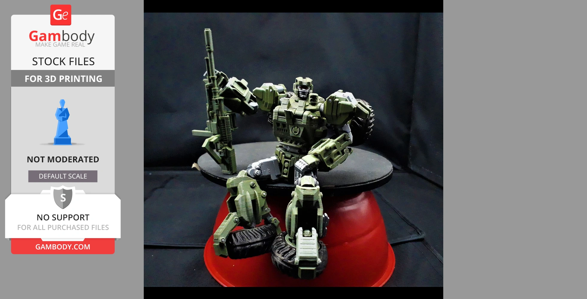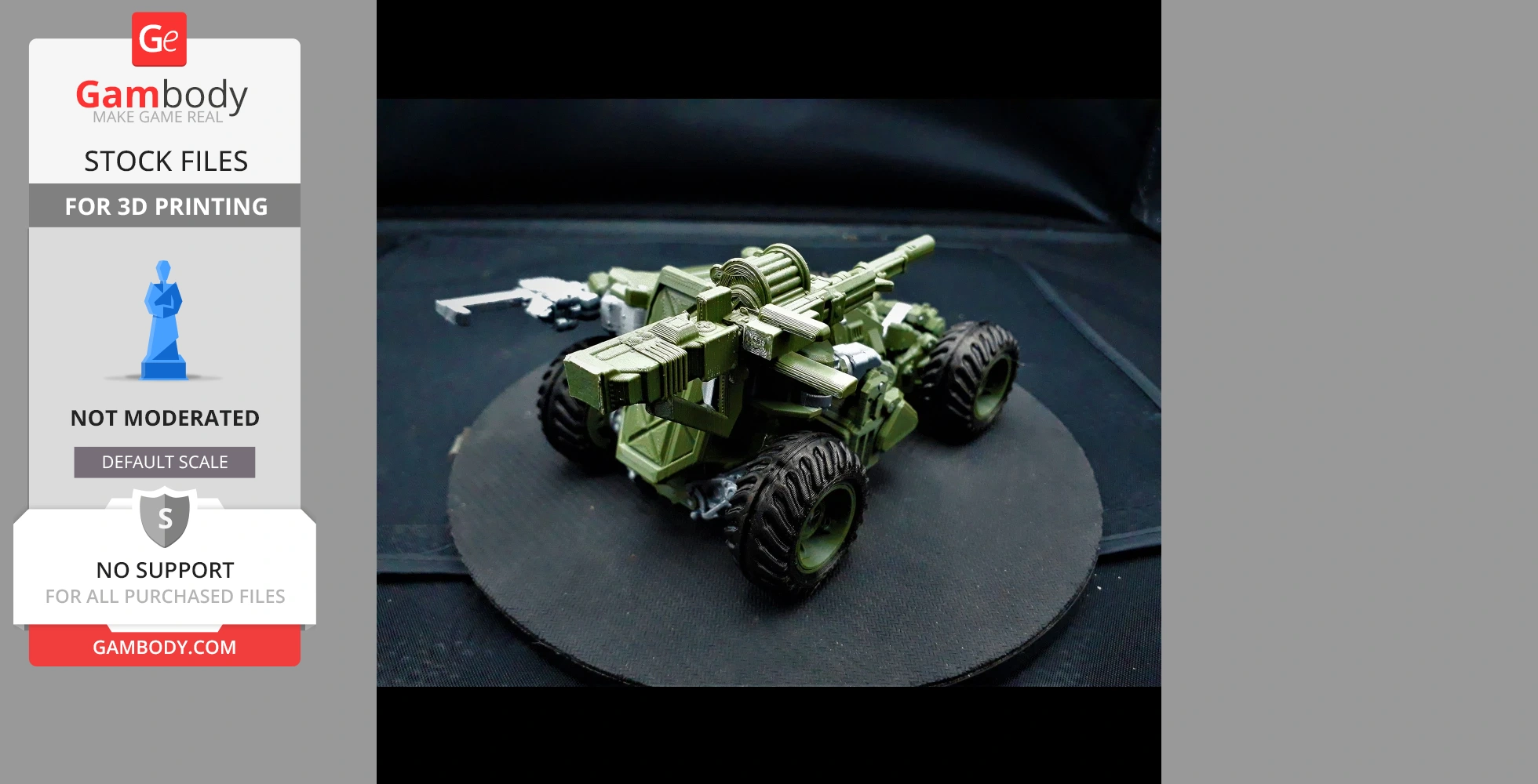 STL files and the cutting of this model are preserved as created by the Author. This model was not moderated by Gambody, it is not subject to technical support by Gambody, and we do not offer any guarantees on the 3D printing results.