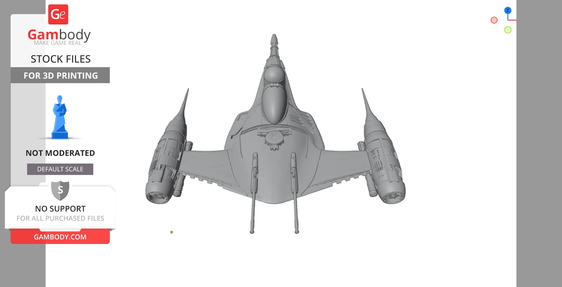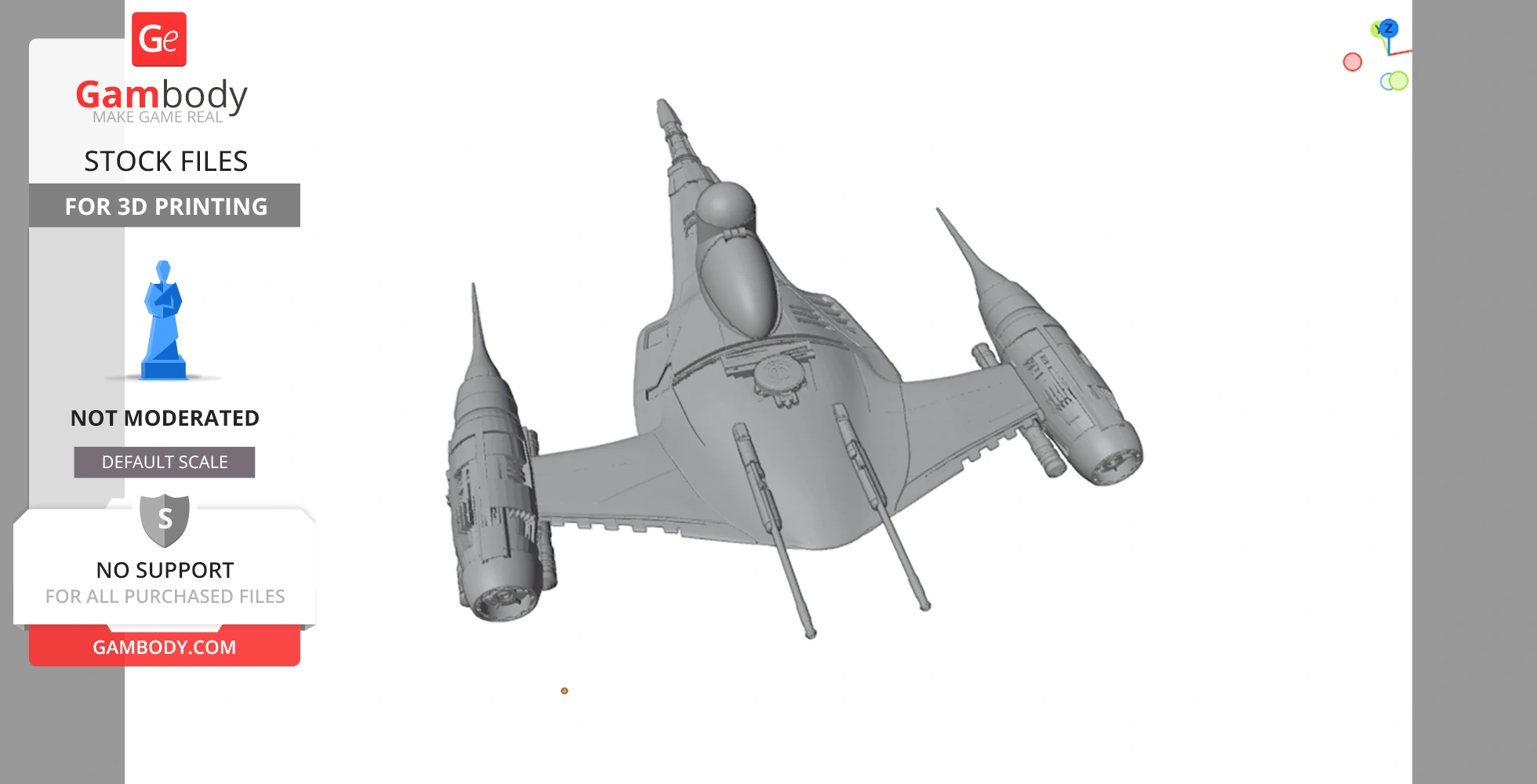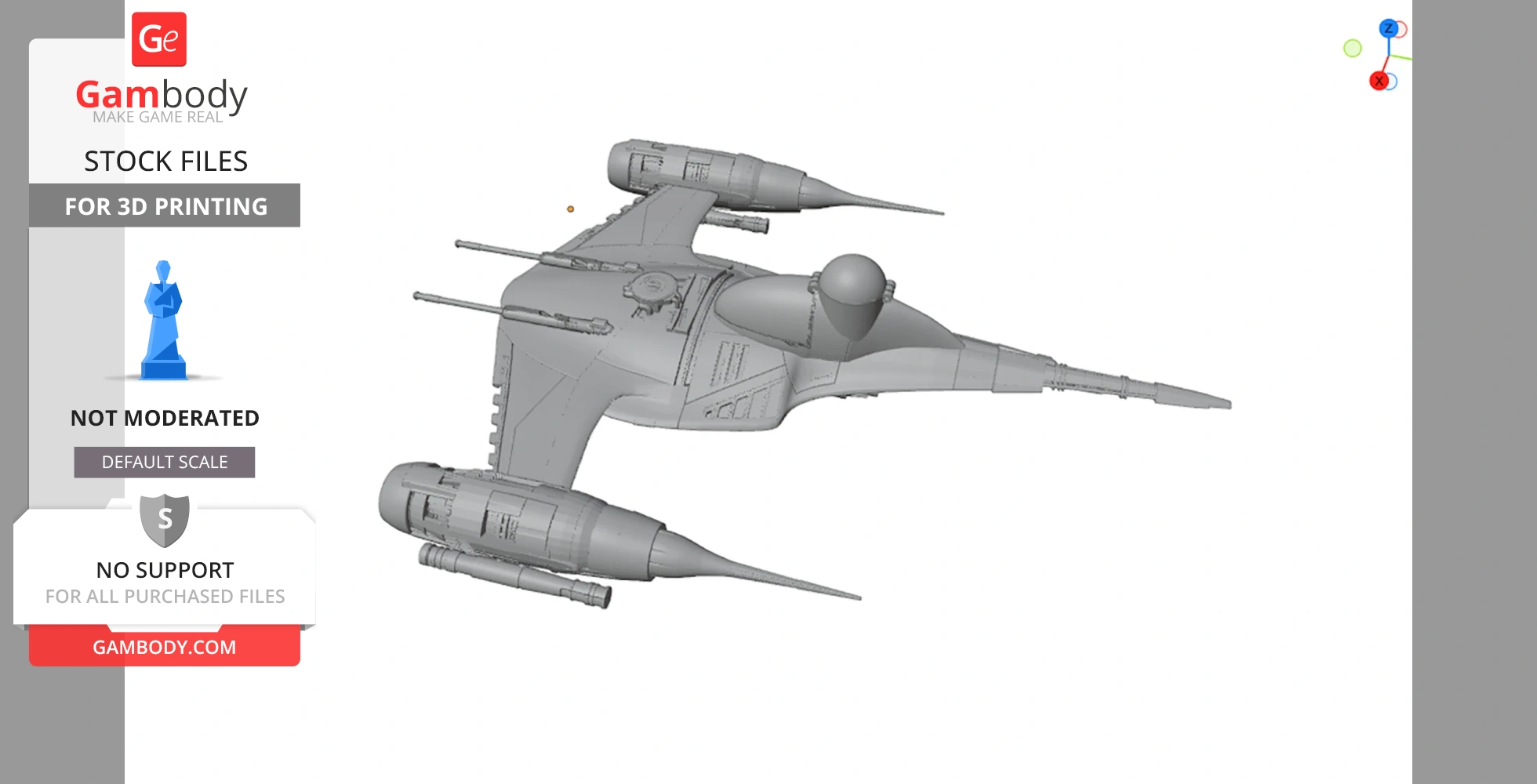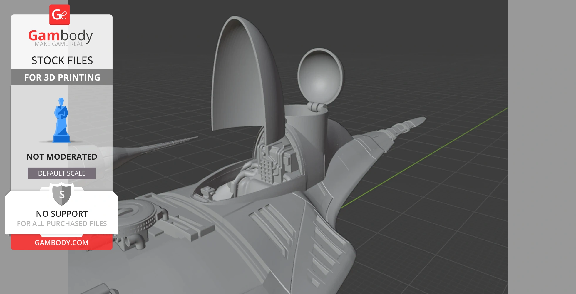 STL files and the cutting of this model are preserved as created by the Author. This model was not moderated by Gambody, it is not subject to technical support by Gambody, and we do not offer any guarantees on the 3D printing results.
