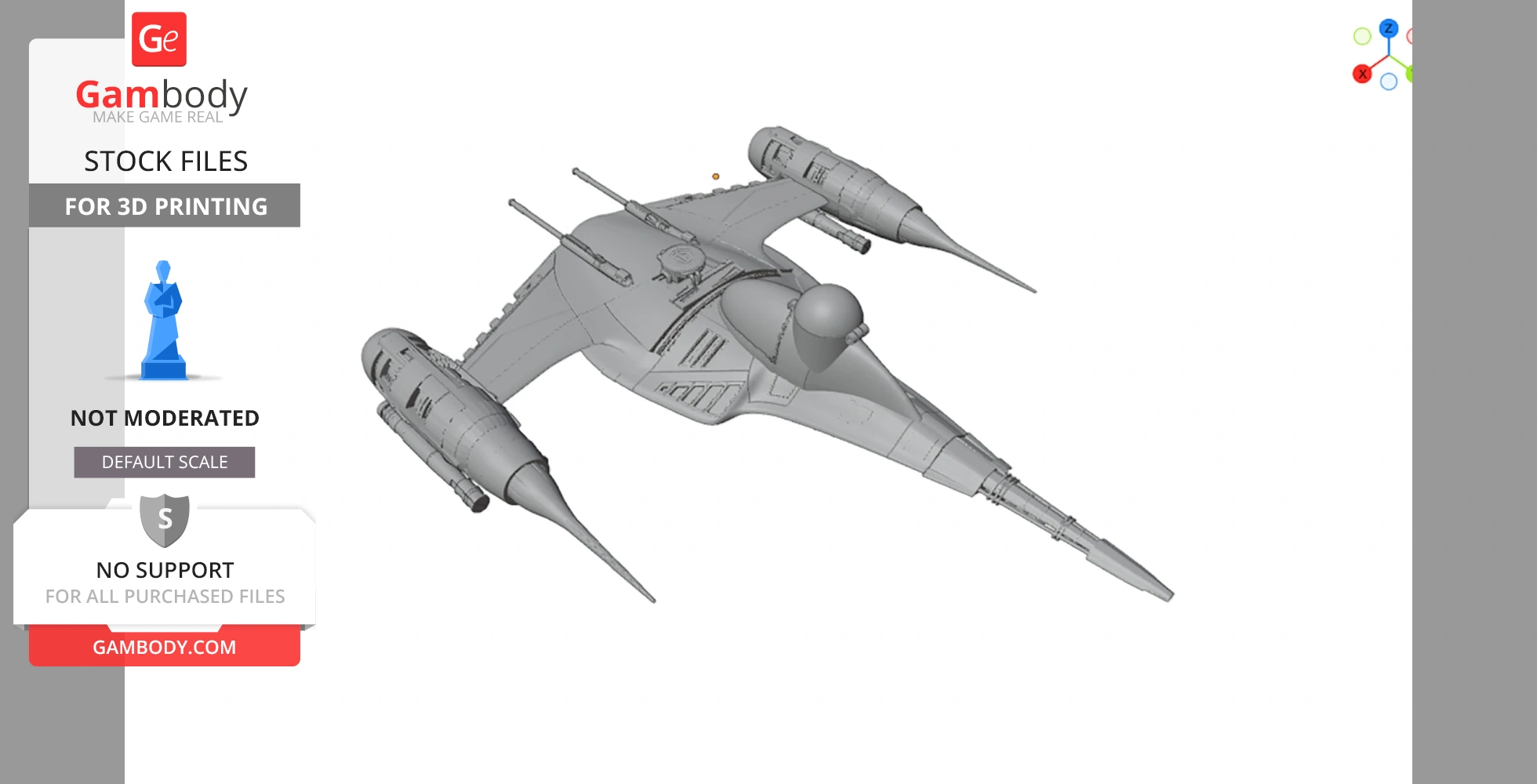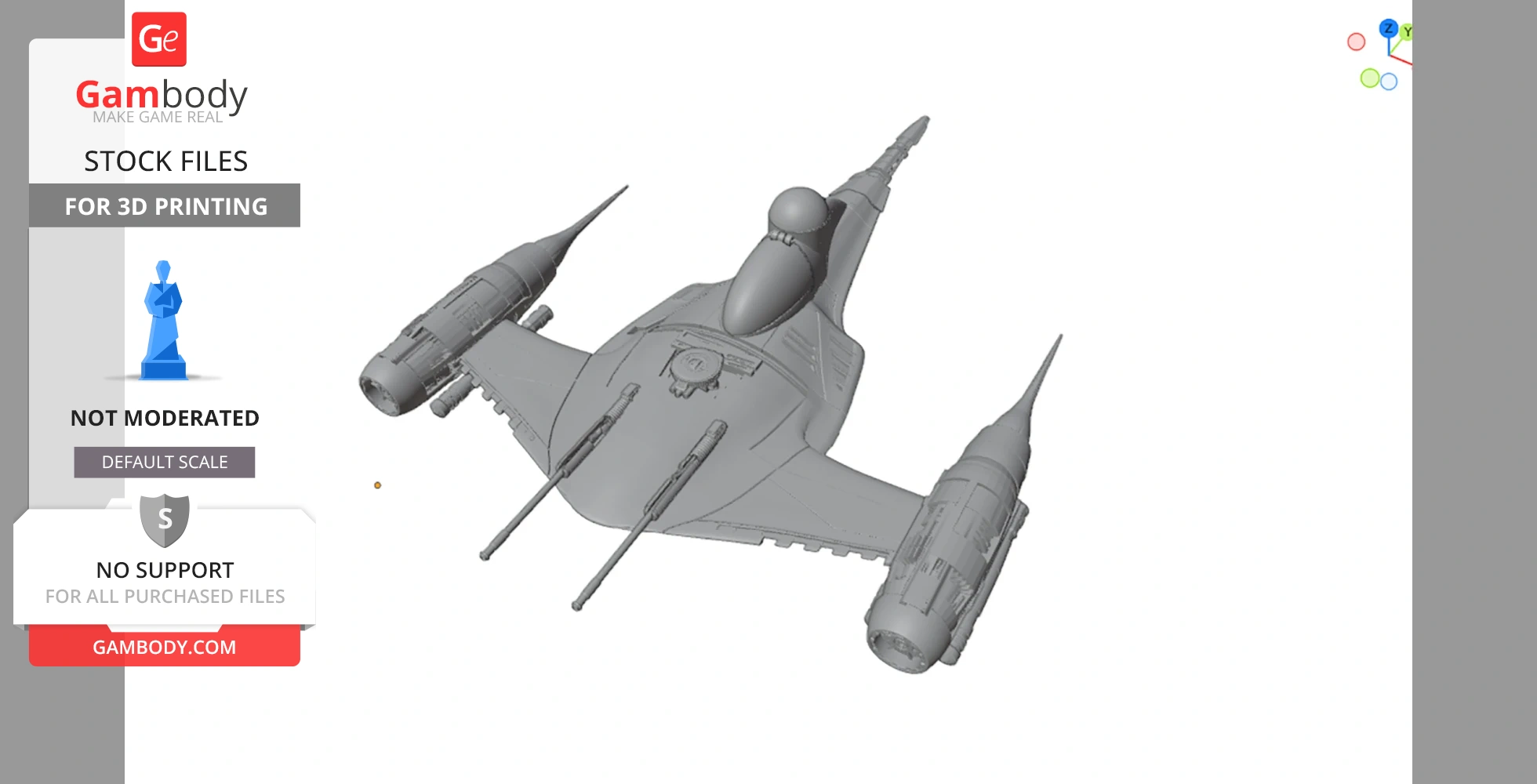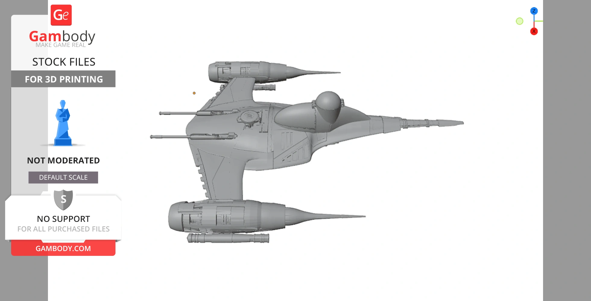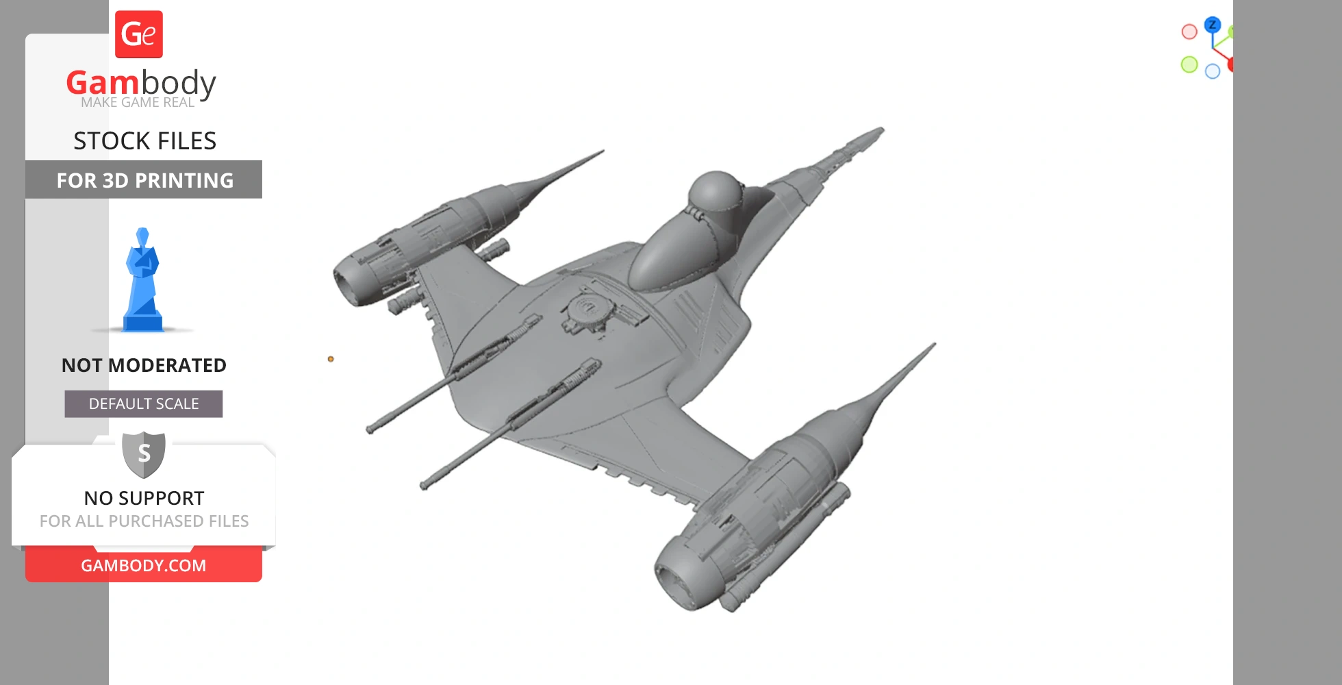 STL files and the cutting of this model are preserved as created by the Author. This model was not moderated by Gambody, it is not subject to technical support by Gambody, and we do not offer any guarantees on the 3D printing results.