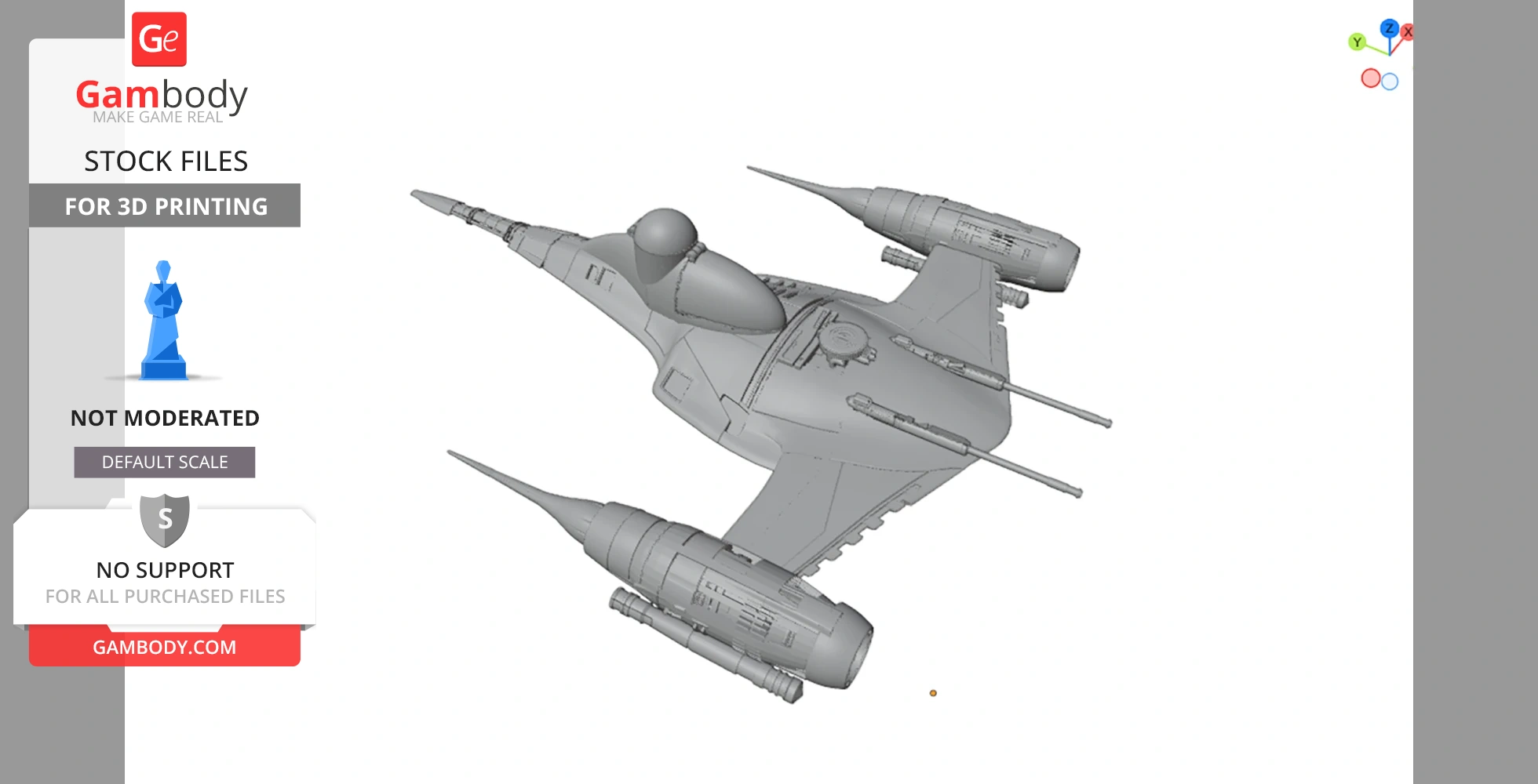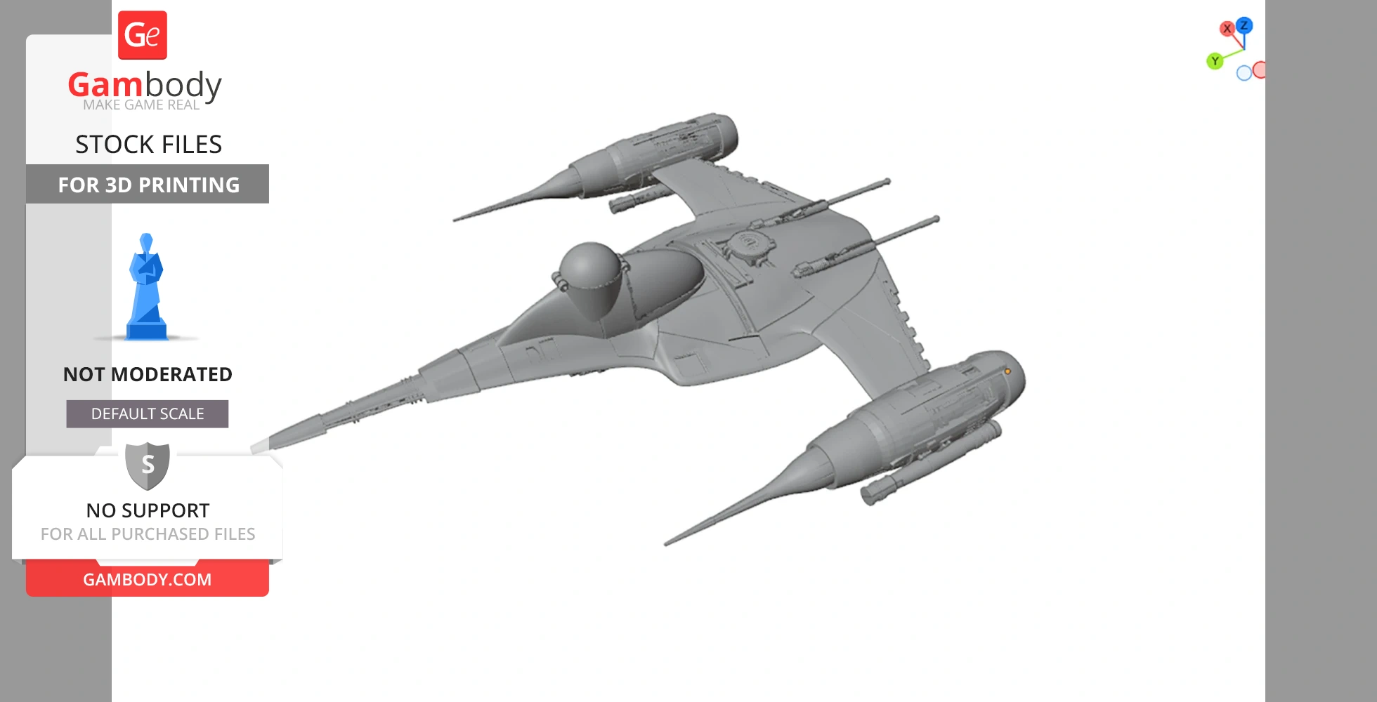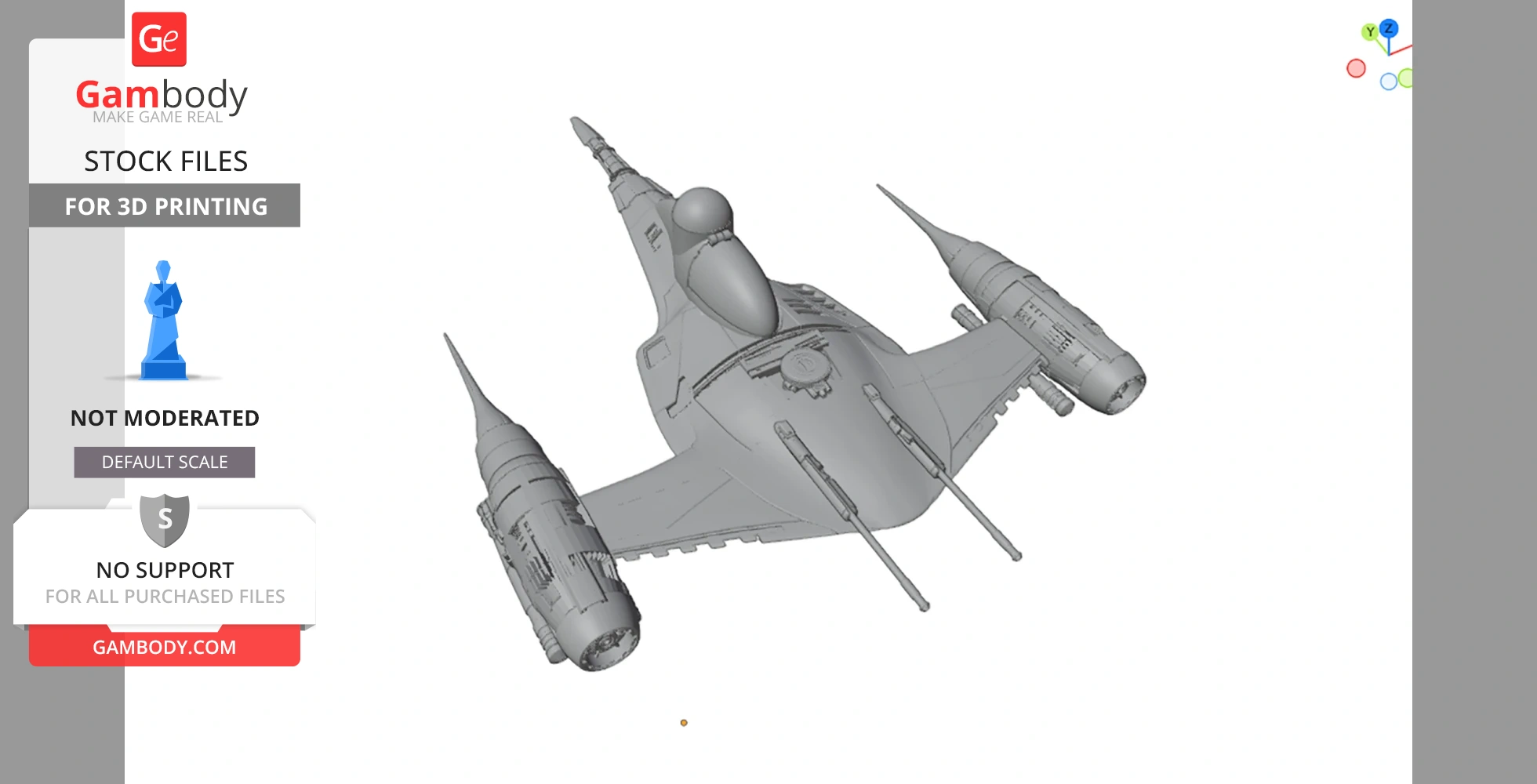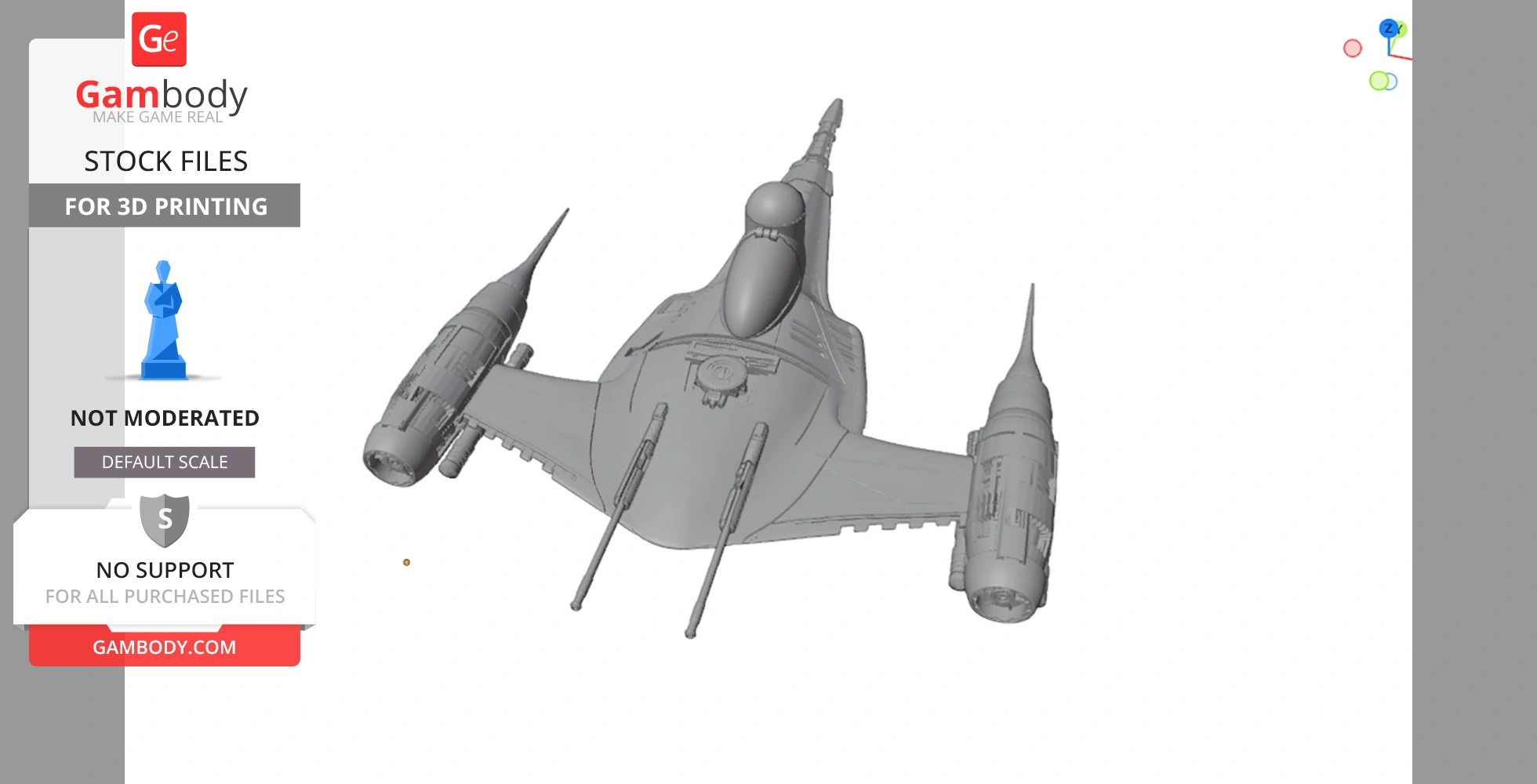 STL files and the cutting of this model are preserved as created by the Author. This model was not moderated by Gambody, it is not subject to technical support by Gambody, and we do not offer any guarantees on the 3D printing results.