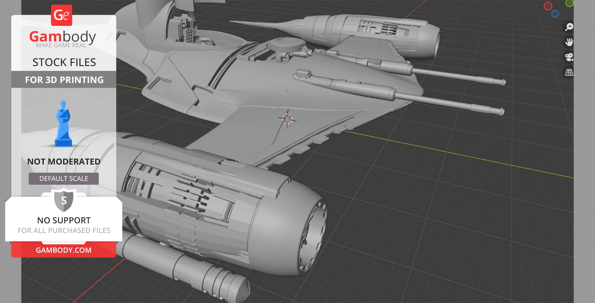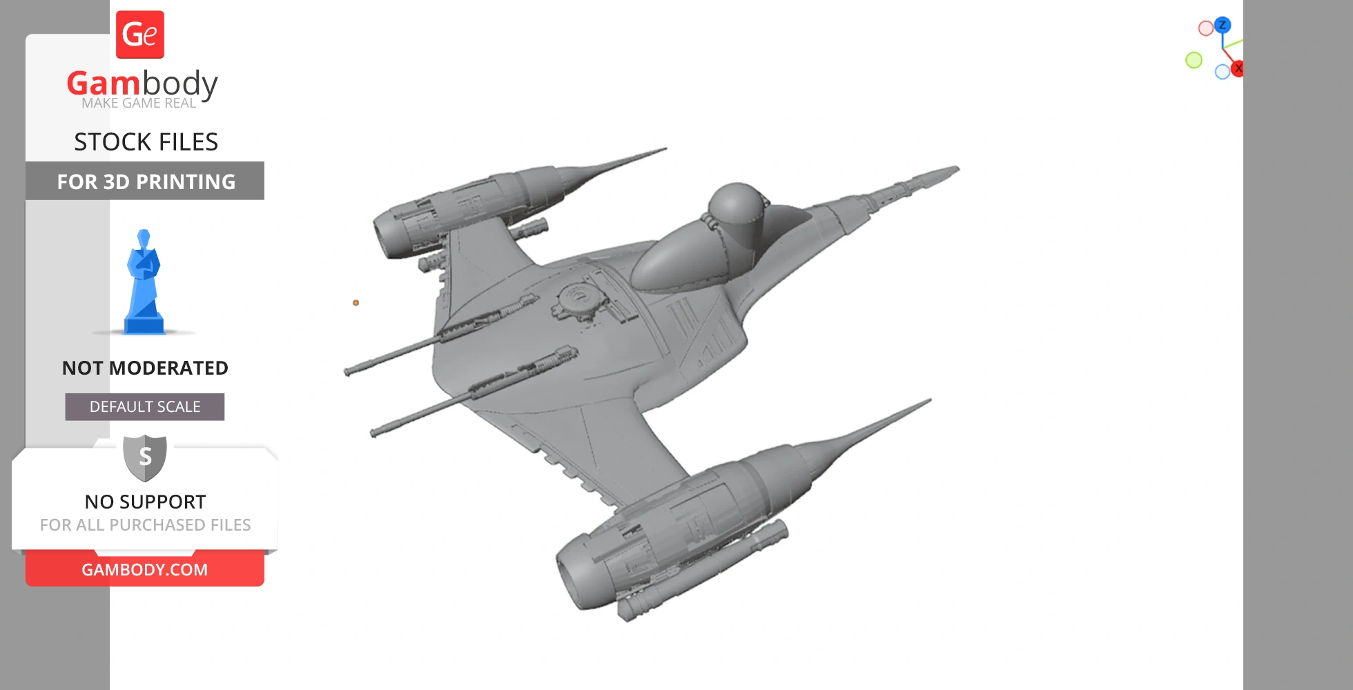 All 3D models on Gambody are sold as downloadable STL or OBJ files. These are digital assets created by 3D artists who are often inspired by characters, vehicles, and elements from popular franchises and universes. While these designs may resemble well-known works, they are original fan-made creations and not official merchandise. When purchasing a model, you are not buying the full ownership of the file or any associated intellectual property. Instead, you are receiving a license to use the digital files under specific terms, as defined by the model's creator. This is commonly referred to as a Digital File License (e.g., Standard, Extended, Creator), which outlines what you can and cannot do with both the files themselves and the 3D-printed objects made from them. Always check the license type to ensure it matches your intended use.