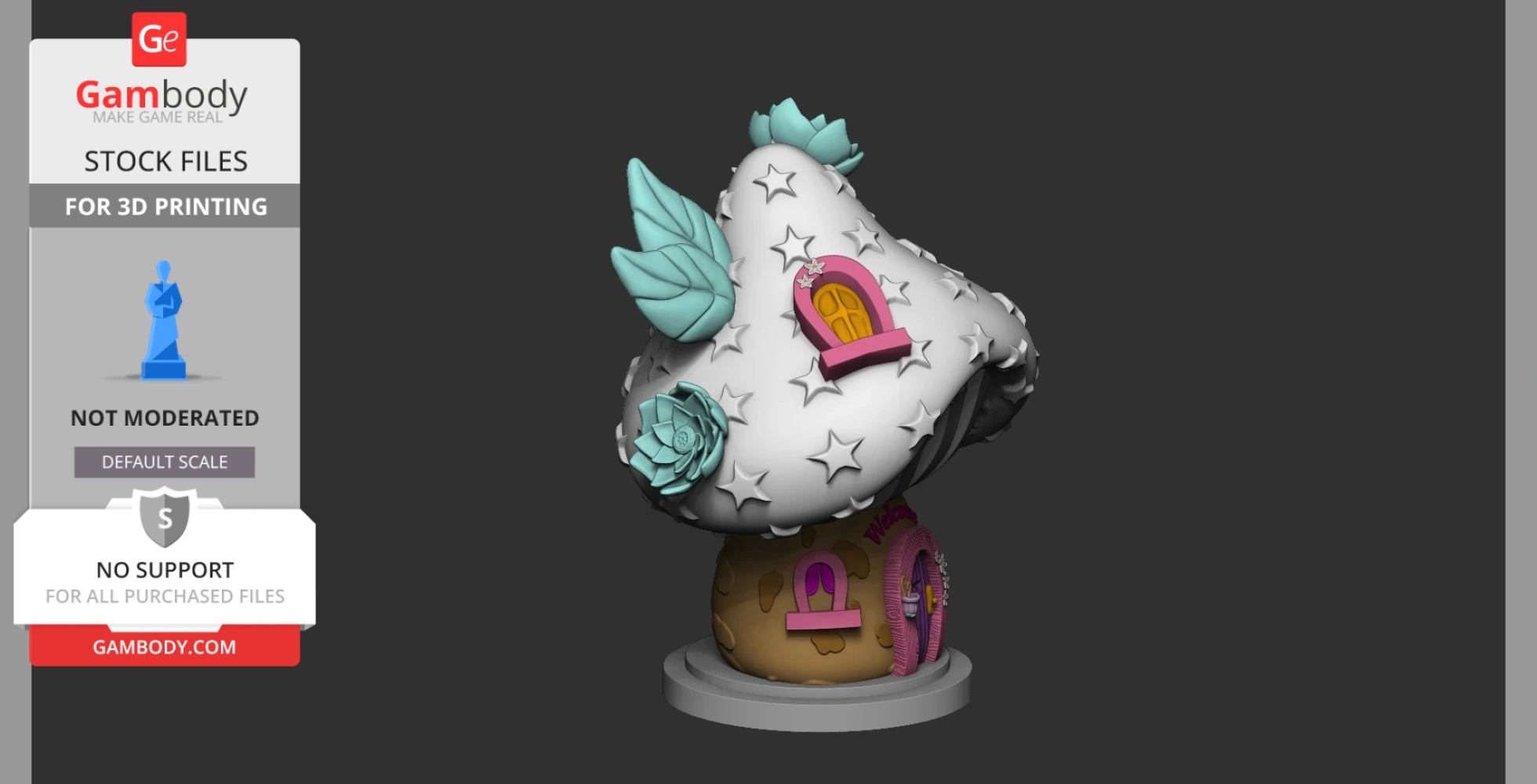 Mushroom House includes 1 version(s) for the supported 3D printer type(s): FFF/FDM. Files are available for download after purchase.