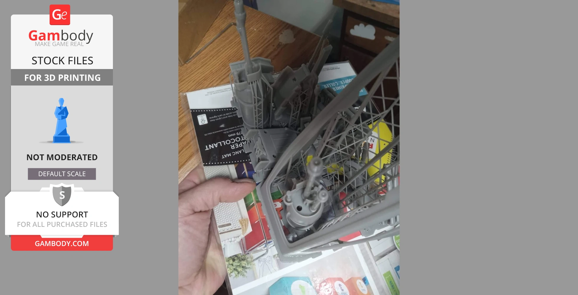 STL files and the cutting of this model are preserved as created by the Author. This model was not moderated by Gambody, it is not subject to technical support by Gambody, and we do not offer any guarantees on the 3D printing results.