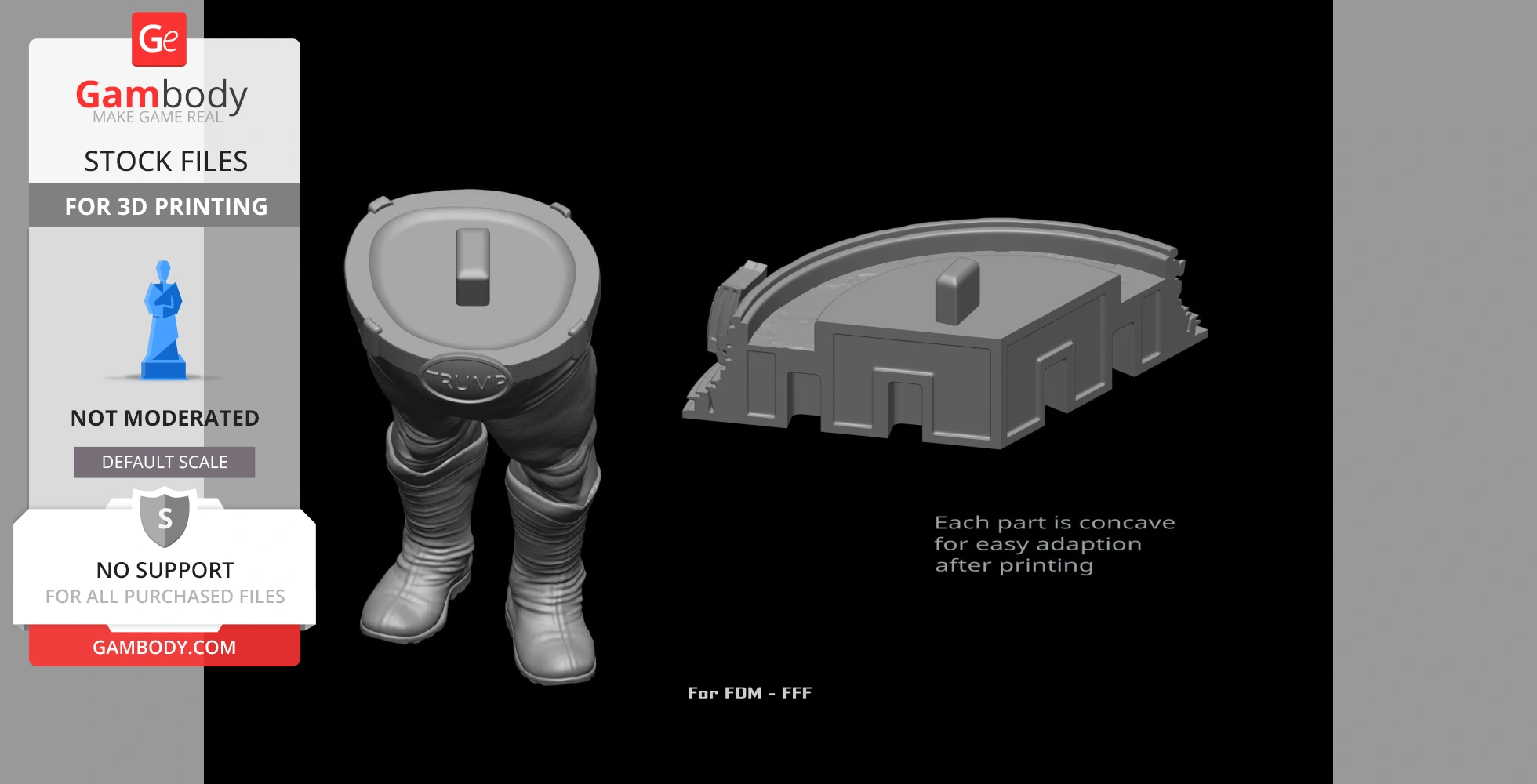 STL files and the cutting of this model are preserved as created by the Author. This model was not moderated by Gambody, it is not subject to technical support by Gambody, and we do not offer any guarantees on the 3D printing results.