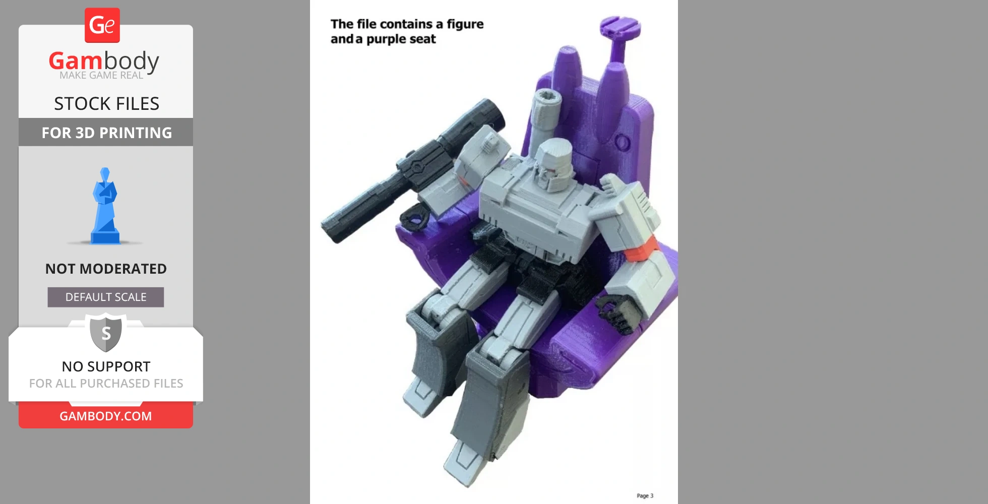 STL files and the cutting of this model are preserved as created by the Author. This model was not moderated by Gambody, it is not subject to technical support by Gambody, and we do not offer any guarantees on the 3D printing results.