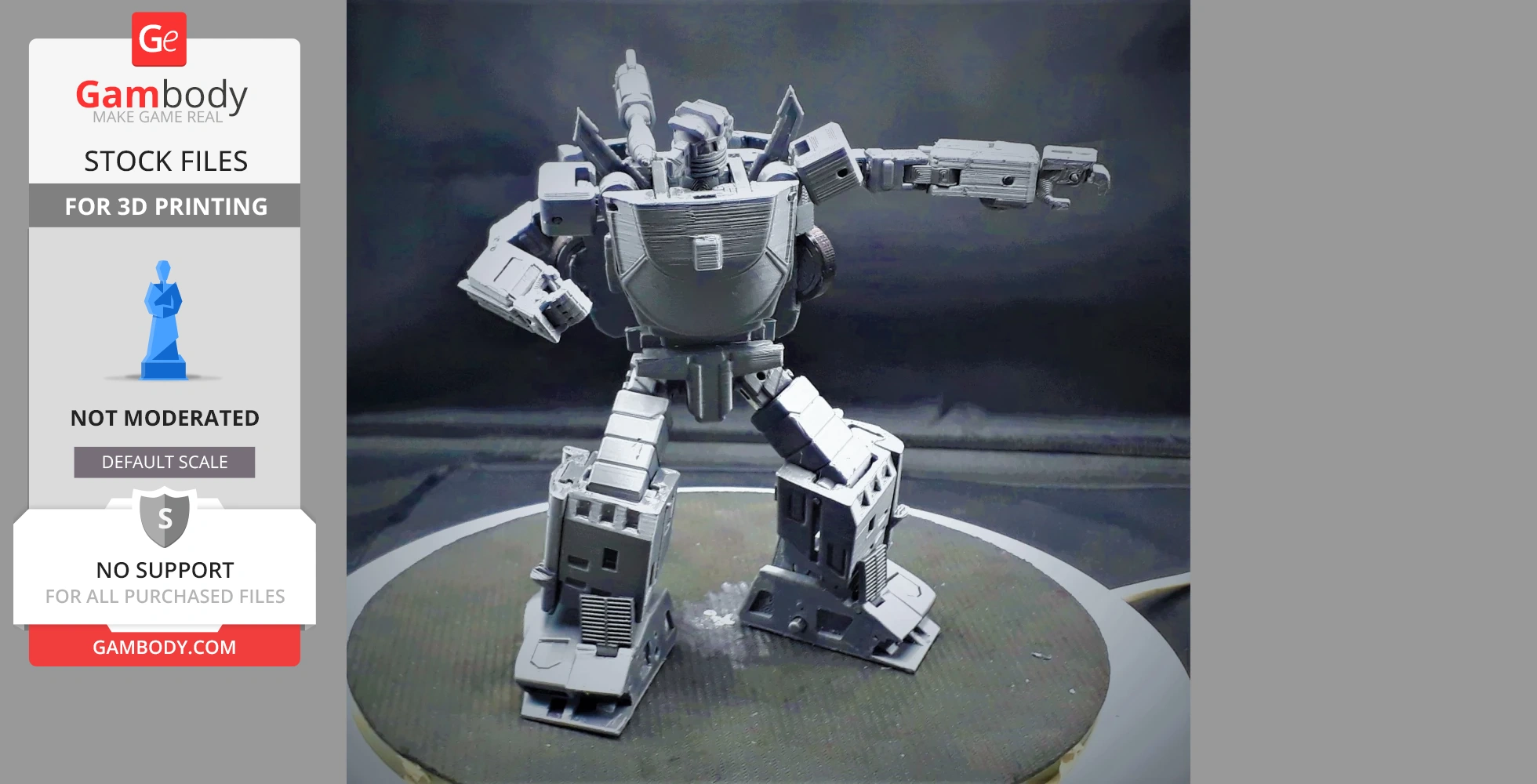 STL files and the cutting of this model are preserved as created by the Author. This model was not moderated by Gambody, it is not subject to technical support by Gambody, and we do not offer any guarantees on the 3D printing results.
