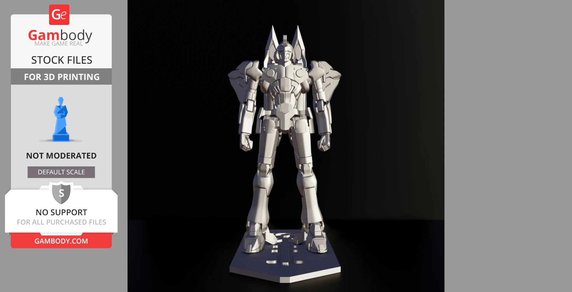 STL files and the cutting of this model are preserved as created by the Author. This model was not moderated by Gambody, it is not subject to technical support by Gambody, and we do not offer any guarantees on the 3D printing results.