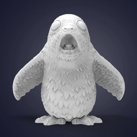 Excited Porg with open mouth and spread wings, ready for 3D printing.
