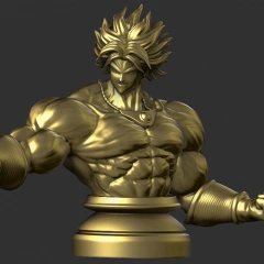 A muscular bust of a character with spiky hair and outstretched arms, designed for 3D printing.