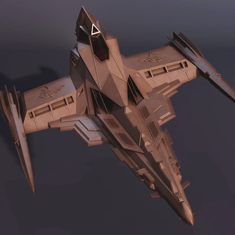 Futuristic angular spacecraft with wings and sharp edges, designed for 3D printing.