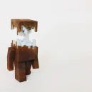 Detailed 3D-printed sci-fi weapon container with intricate parts and a futuristic design, displayed on a desk.